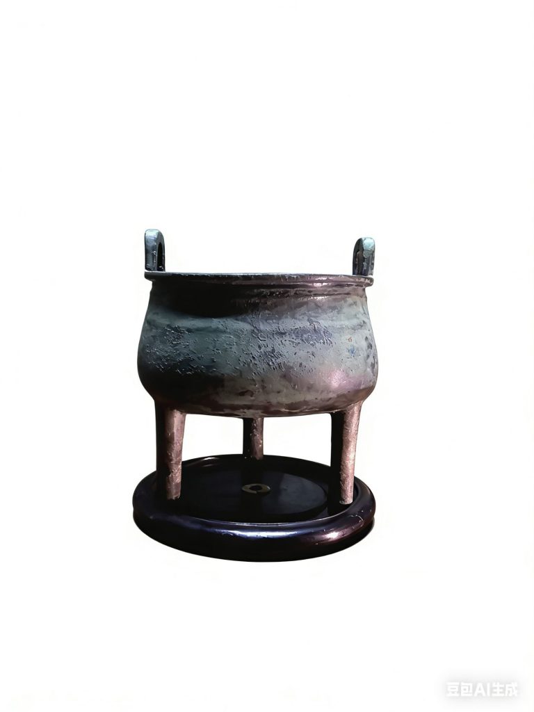斯鼎圆腹含刚,暗分三域,外融内劲,形合中正。双弦隐带,束腰提韵,不臃不滞,节律自生。立耳清挺,三足如阙,门形雄阔,气韵沉雄。铜质坚凝,体势沉稳,大气而温,拙而灵动。底留炊炱,载千年烟火;素面无华,藏万古斯文。静而有魂,沉而含灵,诚古器之至美者也。