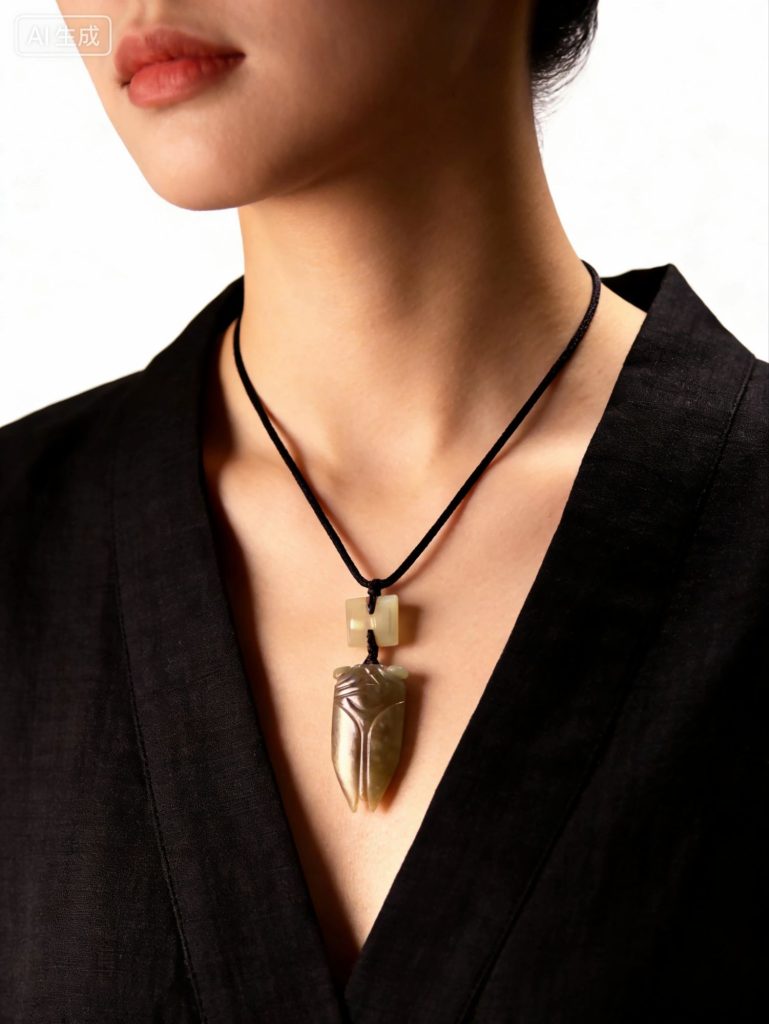 此刻它垂在我颈间,青玉的沉郁与白玉的清透在衣料上晕开,不张扬,却自带力量。那是跨越千年的共鸣:我们都在等,一次属于自己的一鸣惊人。