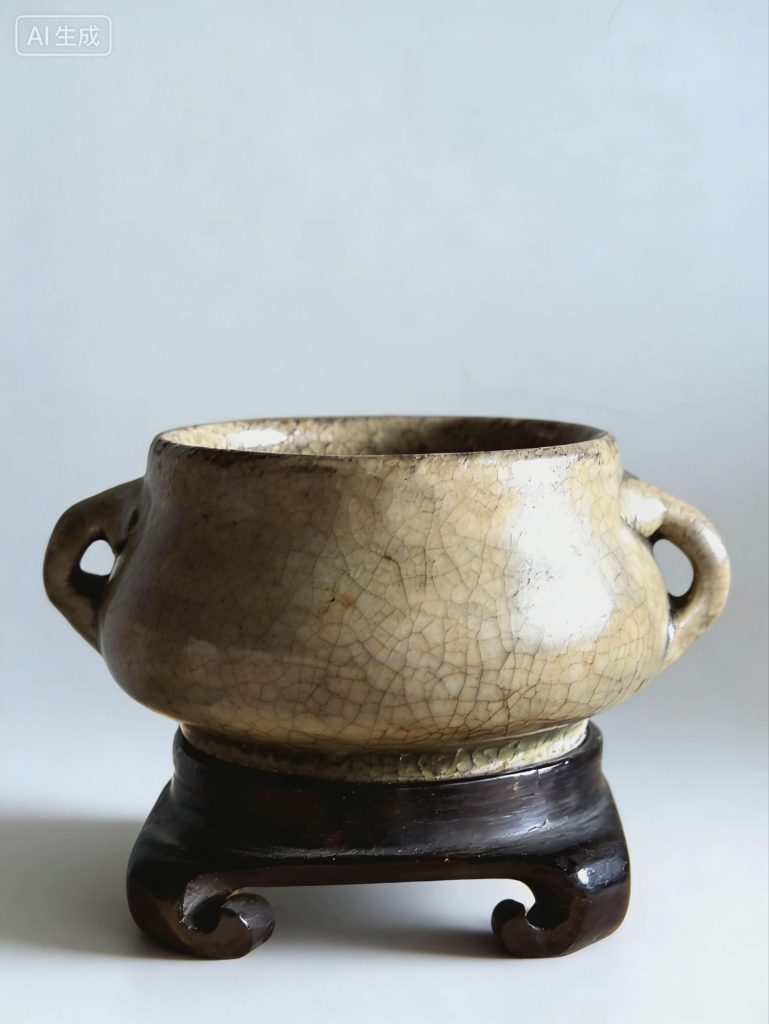 炉之小者,莫若此琴炉也。朴貌若凡窑,而骨自贵。釉青黄而积处清丽,宝光内敛也。开片密而无白筋,干坑之真也。宋人之韵,藏于拙。稚若童子,隐若高士。外不炫华,内自有光。物小而韵长,器朴而骨重。噫!至贵者藏锋,至雅者守拙。此炉虽微,乃宋魂之遗也。
